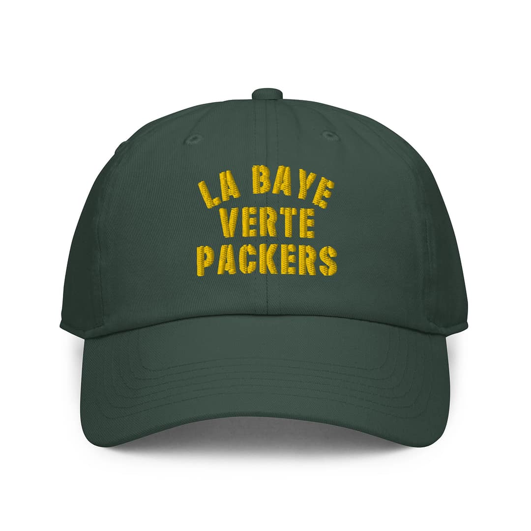 Elevate your streetwear game effortlessly with the “La Baye Verte Packers Fitted Baseball Cap” – a stylish nod to Green Bay’s rich history during the French rule in the 1600s. This cap, meticulously designed and crafted in the fashion capital of Paris, France, allows you to spend less time getting ready while still looking stunning.