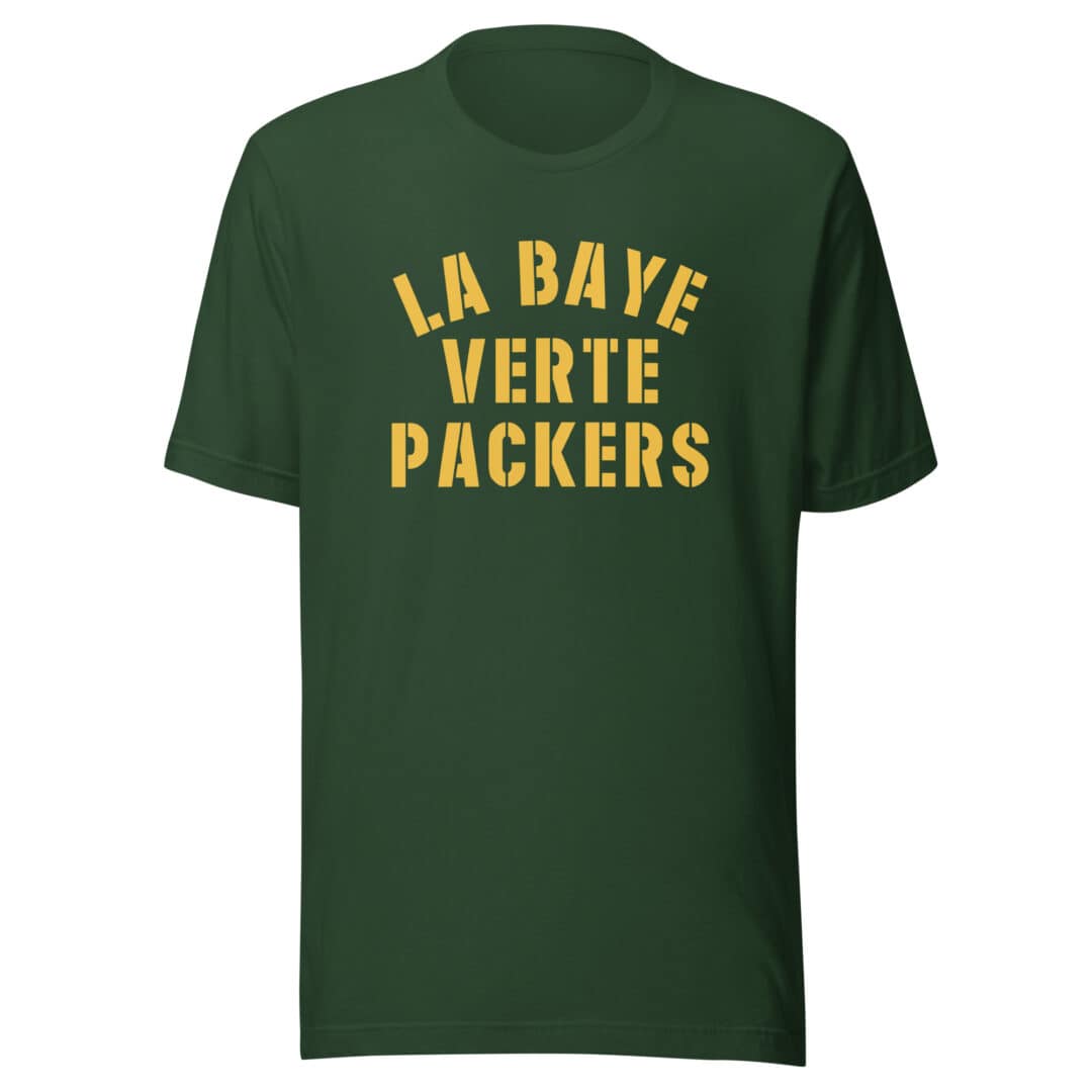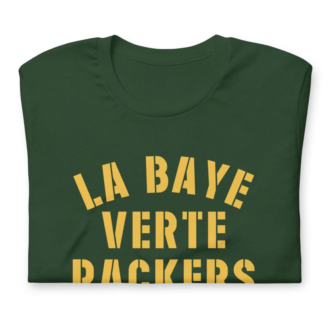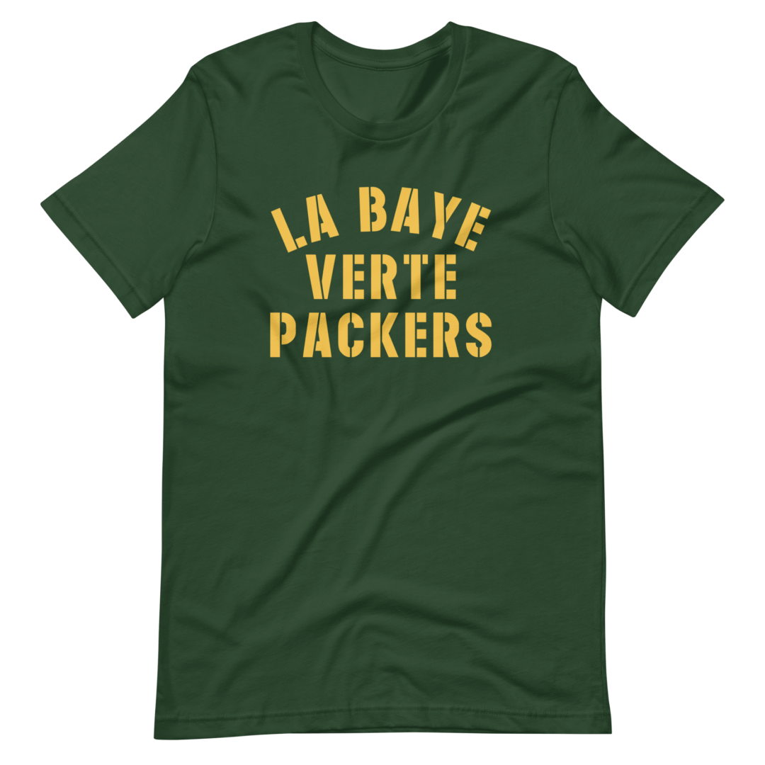 Indulge your passion for the Green Bay Packers and their storied history with our “La Baye Verte Packers GNG Acme Tee,” a nod to the French rule of Green Bay, Wisconsin, during the 1600s and a tribute to the team’s early sponsorship by Acme Packing Co. Crafted with meticulous attention to detail in the fashion capital of Paris, France, this tee transcends mere clothing; it’s a piece of Packers lore.
